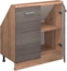 Der Dachschrägenschrank Rion in Edelgrau/Goldkraft Eiche ist die ideale Lösung zur optimalen Nutzung von Dachschrägen. Mit zwei Türen und einer robusten Konstruktion bietet er großzügigen Stauraum und eine elegante Optik. Die schräge Oberseite passt sich perfekt an die Dachschräge an, während die versteckten Füße für eine schwebende Wirkung sorgen.