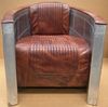 Der Casa Padrino Luxus Art Deco Leder Sessel in Vintage Braun und Silber vereint stilvolles Design mit hochwertigem Echtleder und einem robusten Aluminiumrahmen. Mit großzügigen Abmessungen bietet dieser Lounge Sessel nicht nur Komfort, sondern auch einen eleganten Akzent für Ihr Wohnzimmer.