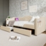 Polsterbett 90x200 cm aus Samt mit Stauraum und USB Type-C – elegantes Daybett in Beige