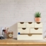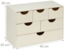 Die Schubladenbox aus unbehandeltem Holz bietet mit ihren 6 Fächern eine praktische Lösung zur Aufbewahrung von Büroutensilien, Bastelzubehör und Kleinkram. Die vormontierte Kommode ist sofort einsatzbereit und eignet sich ideal zum Bekleben oder Bemalen. Mit den kompakten Maßen von 28 x 40 x 20 cm und einem Gewicht von 3,2 kg ist sie vielseitig einsetzbar.