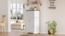Die weiße Kommode mit den Abmessungen 120 x 60,5 x 40 cm vereint modernes Design mit praktischen Funktionen. Sie verfügt über gerillte Türen, goldfarbene Griffe und ein integriertes LED-Sensorlicht, das beim Öffnen der Türen aktiviert wird. Mit zwei höhenverstellbaren Einlegeböden und zwei verstellbaren Türablagen bietet sie flexible Aufbewahrungslösungen. Die geschlossene Bauweise sorgt für staubgeschützten Stauraum und eine aufgeräumte Optik.