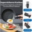 Das BEZIA Pfannenset besteht aus 10 Teilen und bietet Ihnen alles, was Sie für Ihre Küche benötigen. Mit abnehmbaren Griffen können Sie die Pfannen mühelos vom Herd in den Ofen bewegen. Die hochwertige 3-lagige Antihaftbeschichtung sorgt für ein müheloses Lösen von Lebensmitteln. Das Set ist für alle Herdarten geeignet und hält Temperaturen bis zu 240℃ stand. Die langlebige und fleckenabweisende Oberfläche garantiert eine lange Lebensdauer.