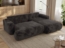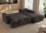 Entdecken Sie das Ecksofa OVO, das mit seiner L-Form und der eleganten dunkelgrauen Plüsch-Oberfläche sowohl Komfort als auch Funktionalität bietet. Mit einer Breite von 271 cm und einer Tiefe von 195 cm ist es ideal für Ihr Wohnzimmer. Die integrierte Schlaffunktion und der praktische Bettkasten sorgen für zusätzlichen Stauraum und eine großzügige Liegefläche von 200 x 155 cm. Genießen Sie entspannte Stunden auf der bequemen Sitzfläche mit Wellenfedern und HR-Schaumstoff.