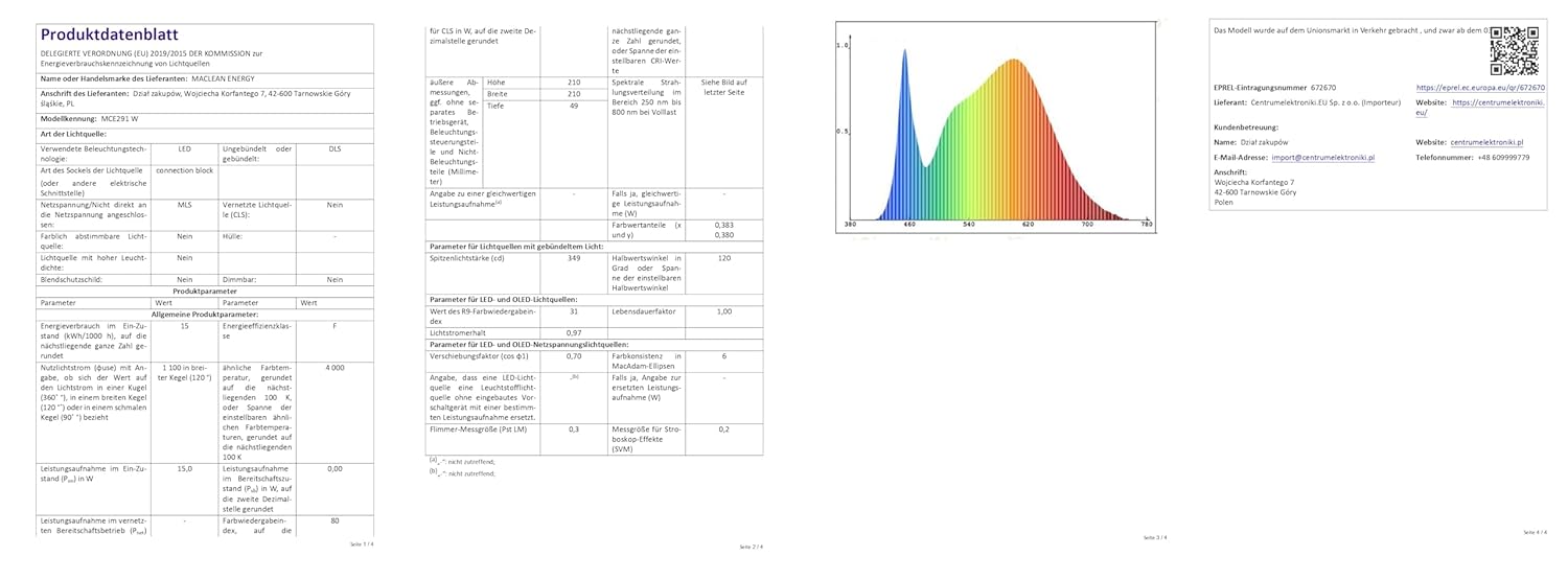 - Lichttemperatur: 4000K Neutralweiß