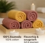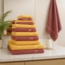 Hochwertiges 12-tlg. Handtuch-Set von Betz aus 100% Baumwolle in honiggelb/beere. Das Set umfasst zwei Duschtücher (70 x 140 cm), vier Handtücher (50 x 100 cm), zwei Gästetücher (30 x 50 cm), zwei Seiftücher (30 x 30 cm) und zwei Waschhandschuhe (16 x 21 cm). Mit einer Grammatur von 470 g/m² bietet es flauschige Weichheit und hohe Saugkraft. Pflegeleicht und waschbar bis 60°C, ist es ideal für den täglichen Gebrauch.