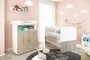 Das Babyzimmer Hanna Set 1 umfasst ein Babybett, eine Wickelkommode mit Wickelaufsatz und ein Wandboard. Das Babybett hat eine Liegefläche von 70 x 140 cm, einen 3-fach verstellbaren Lattenrost und ist bis zu 20 kg belastbar. Die Wickelkommode bietet mit 2 Türen und einem offenen Ablagefach praktischen Stauraum. Alle Teile sind aus pflegeleichtem Melamin in Weiß mit Eiche Desmond Silbergrau-Dekor gefertigt und entsprechen den Standards DIN EN716-1:2017/DIN EN716-2:2017.