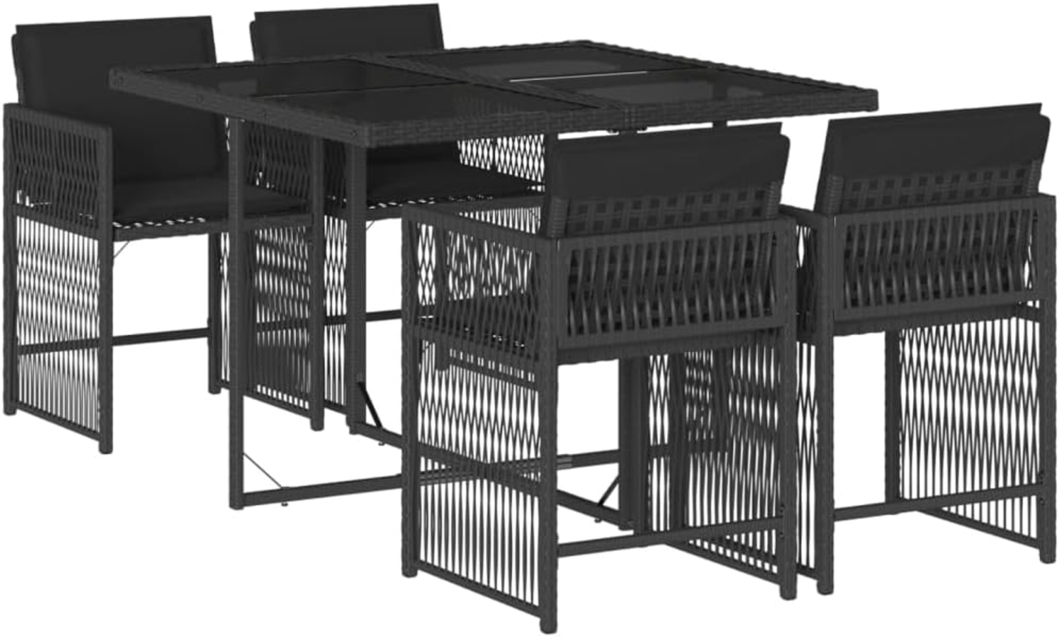 vidaXL 5-tlg. Garten-Essgruppe mit Kissen Schwarz Poly Rattan 3211615