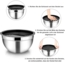 Das Homikit Rührschüssel Set in Schwarz aus Edelstahl umfasst fünf Schüsseln mit einem Fassungsvermögen von 4,5 l, 2,7 l, 1,5 l, 1,2 l und 0,7 l. Es ist ideal zum Mischen, Lagern und Servieren von Lebensmitteln. Die luftdichten Deckel halten Ihre Speisen frisch, während die spülmaschinenfesten Schüsseln eine einfache Reinigung ermöglichen. Dank der stabilen Bauweise und der stapelbaren Funktion ist das Set platzsparend und praktisch für jede Küche.
