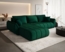 Ecksofa Schlafsofa MISATO in Grün mit linksseitiger Ottomane bietet nicht nur eine stilvolle Optik, sondern auch hohen Komfort. Die stabile Holzkonstruktion und die bequeme Polsterung aus Wellenfedern und PU-Schaum sorgen für ein angenehmes Sitzgefühl. Mit einem Bettkasten ausgestattet, ist es ideal für entspannte Abende und Übernachtungsgäste. Der pflegeleichte Bezug aus robustem Monolith-Stoff schützt vor Flüssigkeiten und ist langlebig.