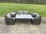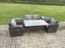 - Materialien: Polyrattan, Stoff, verzinkter Stahl, Schaum, Glas
