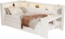 Gepolstertes Tagesbett mit USB-Anschlüssen und LED-Gürtel, ausgestattet mit einem Ausziehbett und einem integrierten Schreibtisch. Das elegante Design in Weiß und die klare Silhouette machen es zu einer perfekten Ergänzung für jedes Schlafzimmer. Mit einer Liegefläche von 90x200 cm bietet es ausreichend Platz für Übernachtungsgäste und vereint Funktionalität mit Stil.
