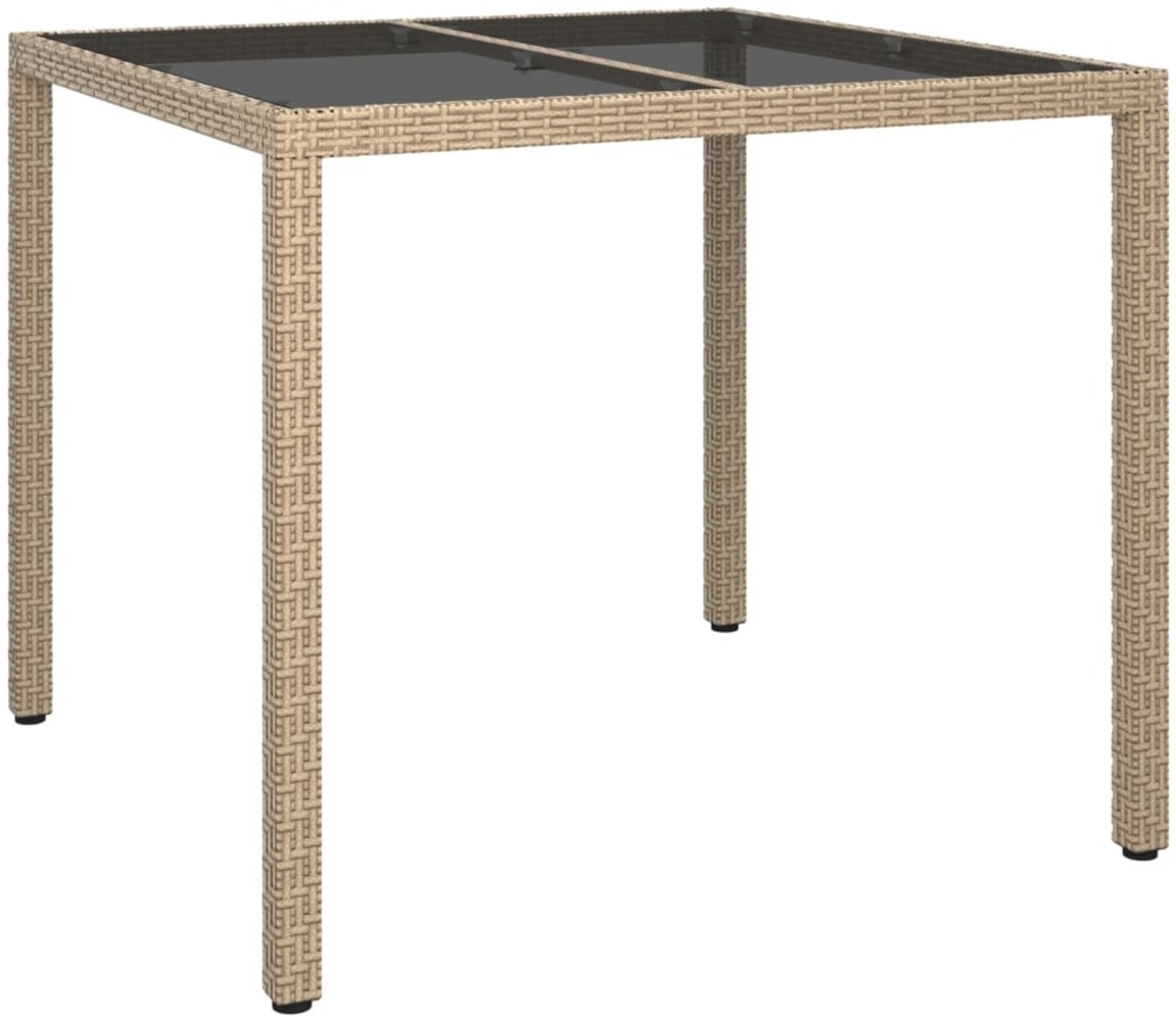 vidaXL Gartentisch 90x90x75 cm Gehärtetes Glas Poly Rattan Beige 316703