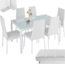 Die TecTake 800551 Esszimmergruppe besteht aus einem Esstisch und 6 Essstühlen, die sich durch ihr modernes Design und die strapazierfähigen Kunstlederbezüge auszeichnen. Die robuste Tischplatte aus Sicherheitsglas sorgt für Langlebigkeit und einfache Reinigung. Die Stühle bieten mit einer Gesamtgröße von ca. 49 x 41,5 x 98 cm und einer Belastbarkeit von 120 kg hohen Komfort. Der Tisch hat die Maße 130 x 70 x 75 cm und kann mit bis zu 60 kg belastet werden.