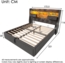 Praktisches Polsterbett mit hydraulischem Stauraum und intelligentem LED-Kopfteil. Das Bett bietet eine Liegefläche von 160x200 cm und ist mit 4 USB/Type-C Anschlüssen ausgestattet. Der graue Leinenstoff und die rautenförmige Steppung verleihen dem Bett ein hochwertiges Design. Der Lattenrost und die stabile Konstruktion garantieren eine Tragkraft von bis zu 113 kg.