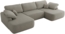 Die Wohnlandschaft Cubo U in Hellgrau Boucle vereint großzügigen Platz mit modernem Design. Mit einer Breite von 370 cm und einer Liegefläche von 320x135 cm bietet sie ausreichend Raum für Familie und Freunde. Die drei losen Rückenpolster (je 110 cm) sind flexibel anordbar und sorgen für individuellen Komfort. Die stabile Holzunterkonstruktion garantiert Langlebigkeit, während die tiefen Sitzflächen (70 cm) und weichen Kissen höchsten Sitz- und Liegekomfort bieten.