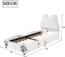 Entdecken Sie unser bezauberndes Bären-Polsterbett in reinem Weiß, das mit seiner niedlichen Bärenform das Kinderzimmer in eine magische Spielwiese verwandelt. Mit einer Matratzengröße von 90x200 cm und einer weichen Samtpolsterung bietet es höchsten Kuschelfaktor und Komfort. Der integrierte Lattenrost mit 12 flexiblen Latten unterstützt Matratzen von 14-28 cm Stärke und sorgt für erholsame Nächte. Dieses fantasiefördernde Design wird zum Highlight in jedem Kinderzimmer.