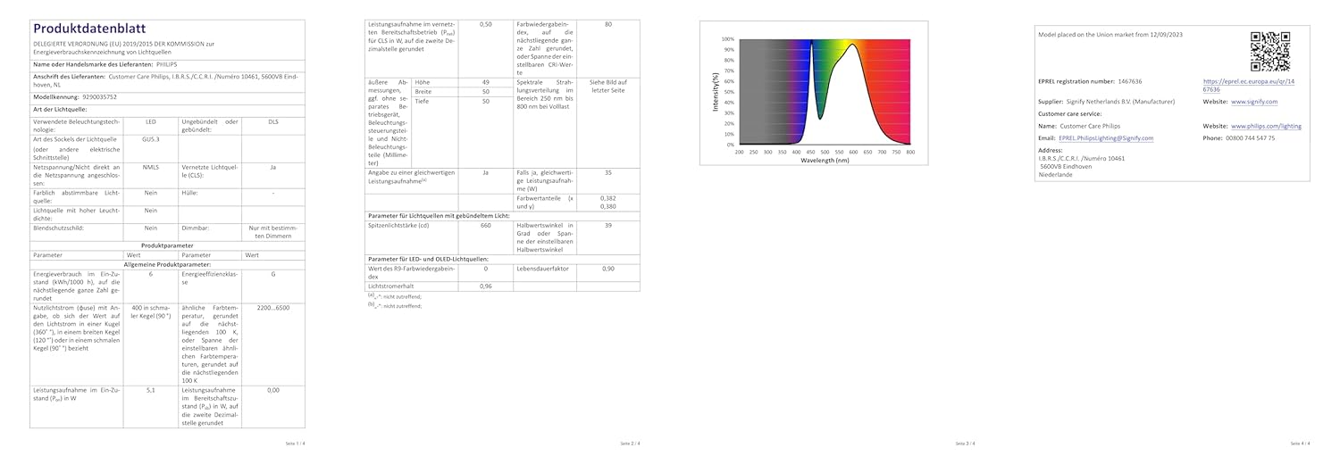Rüste Deine herkömmlichen Spots mit Hue MR16 auf. Mit einem für die meisten Fassungen geeigneten 12-V-Doppelstiftdesign bringt diese MR16-Lampe warmweißes bis kaltweißes smartes Licht in jeden Winkel Deines Zuhauses. Kompatibel mit den meisten Transformatoren.> Highlights- Sofortiges kabelloses Dimmen- Kompatibel mit Bluetooth und Hue Bridge- Warmweißes bis kaltweißes Licht- Niedervolt, 12 V- GU5.3 Fassung- 400 Lumen- Mit den gängigsten Transformatoren kompatibel- Ca. 10 Jahre Nutzungsdauer> Produkttyp- Leuchtmittel Smart- ear-Kategorie (Elektro G): relevant, Kategorie 3: Lampen, Lampen B2C> Spezifikationen- arbeitet mit: Apple Home Kit, Amazon Alexa, Cortana, Google Assistant- Sprachsteuerung möglich: mit Gateway- Funkstandard: Bluetooth, Zig Bee- Dimmbar- Energieeffizienzklasse: G- Fassung: GU5,3- Durchschnittliche Lebensdauer: 25000 Stunde(n)- Lichtfarbe: Weiß, Warmweiß, Kaltweiß- Lichtstrom max.: 400 lm- Farbtemperatur min.: 2200 K- Farbtemperatur max.: 6500 K- Durchmesser: 50 mm- Glasfarbe: Weiß- Lampenform: Reflektor- CRI/Ra-Wert: 80- Lichtstrom bei 2700 K: 270 lm> Versand- WEEE: 43841997> Stromversorgung- Leistungsabgabe: 5.1 W> Grundeigenschaften- Farbe: Weiß- Höhe: 49 mm- Länge/Tiefe: 50 mm- Breite: 50 mm- Gewicht: 0.05 kg> Lieferumfang- Philips Hue MR16 LED-Lampe WEEE-Nr. 57797264; GPSR Signify Gmb H, Röntgenstraße, 22, 22335, Hamburg, Deutschland, www. signify. com, info@signify. com, +49; ; ; ; ; ; ; ;