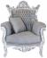 Casa Padrino Barock Sessel "Al Capone" mit Kissen in grau / silber - Antikstil Wohnzimmermöbel