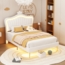 Kinderbett mit Muschel-Kopfteil und Krone, LED-Licht mit Farbwechsel, höhenverstellbarem Kopfteil, stabiler Holzlattenbasis Bild 1