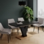Entdecken Sie den Esstisch Fenaro in Schwarz/Eiche, der sich durch seine ausziehbare Funktionalität auszeichnet. Mit einer Fläche von 120x80 cm lässt sich der Tisch mühelos auf 160 cm erweitern, ideal für gesellige Zusammenkünfte. Die hochwertige Verarbeitung und die Melaminharzbeschichtung sorgen für Langlebigkeit und ansprechendes Design. Der Tisch ist aus Spanplatte gefertigt und hat ein stabilisierendes MDF-Gestell.