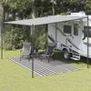 Legen Sie den vidaXL Zeltteppich in Anthrazit und Weiß (250 x 450 cm) vor Ihr Zelt, unter Ihren Wohnwagen oder auf Ihre Terrasse, um ein komfortableres Ambiente zu schaffen. Hergestellt aus 100% hochdichtem Polyethylen (HDPE), bietet dieser Teppich eine gute Wasserdurchlässigkeit und Atmungsaktivität. Die integrierten Ösen an den vier Ecken ermöglichen eine einfache Befestigung, während der Teppich bei Bedarf auf jede gewünschte Größe zugeschnitten werden kann.