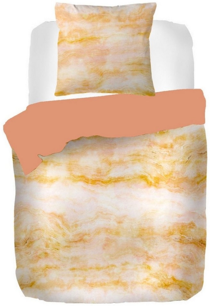 Kayori Bettwäsche Echi überzeugt mit einem verträumten Design in sanften Orange-, Gelb- und Rosatönen auf einem cremefarbenen Hintergrund. Der dezente Marmorprint und die einfarbige Rückseite in zartem Rosa verleihen dem Bettbezug eine elegante Note. Hergestellt aus 100 % reiner Bio-Baumwolle, bietet der Mako-Satin eine weiche und geschmeidige Oberfläche. Der Bettbezug ist pflegeleicht und kann bei bis zu 60 Grad gewaschen sowie im Trockner getrocknet werden.