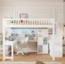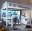 Das Merax Hochbett 140 x 200 cm vereint modernes Design mit cleverer Funktionalität. Es bietet einen Schlafplatz, Stauraum, einen Schreibtisch und stimmungsvolle LED-Beleuchtung in einem Möbelstück. Ideal für Familien, die Wert auf Ordnung und Komfort legen.