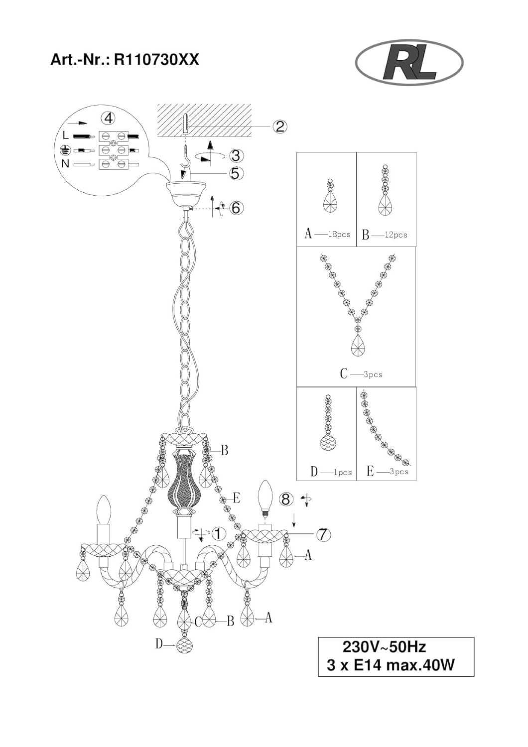 Der 3-flammige Kronleuchter LÜSTER aus dem Hause Reality Leuchten ist die richtige Wahl für alle, die es glamourös mögen. Die ausgefallene Hängelampe hat einen Durchmesser von 46cm und eignet sich daher für zahlreiche Einsatzbereiche. Die Farbkombi aus Silber Chrom und der bunte Acryl-Kristallbehang sorgen fürglanzvolle Lichtspiele über dem Esstisch, in Eingangsbereichen oder der Galerie. Der Kronleuchter ist mit drei E14 Fassungen ausgestattet die für Leuchtmittel bis max. 40 Watt geeignet sind.(Leuchtmittel sind nicht im Lieferumfang enthalten).