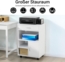 Druckertisch mit Schublade und Tür Holz Weiß FBT106-W. Dieser praktische Druckertisch aus Holz in Weiß bietet mit drei Fächern, einer Schublade und einer Tür ausreichend Stauraum für Büroartikel. Mit einem Gewicht von ca. 19,5 kg und einer Belastbarkeit von bis zu 50 kg ist er stabil und vielseitig einsetzbar. Die Produktmaße betragen ca. 50 x 75 x 40 cm, während die Paketmaße ca. 80 x 48 x 16 cm betragen. Dank der leicht rollbaren Konstruktion ist er flexibel einsetzbar.