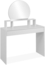 Der Calicosy 'IMAGE' Schminktisch in Weiß vereint Funktionalität und elegantes Design. Mit einem abgerundeten Spiegel, drei oberen Fächern und einer großen Schublade bietet er ausreichend Stauraum für Ihre Kosmetikartikel. Die Maße betragen 100 cm in der Länge, 40 cm in der Tiefe und 140 cm in der Höhe. Hergestellt aus Spanplatten und MDF, ist der Tisch mit Melamin- oder Papierdekor beschichtet und wiegt netto 23 kg.