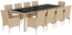 vidaXL 11-tlg. Garten-Essgruppe mit Kissen in Beige aus Poly Rattan und Glas ist die perfekte Wahl für Mahlzeiten im Freien oder entspannte Stunden im Garten, Hinterhof oder auf der Terrasse. Diese langlebige und pflegeleichte Gartenmöbelgruppe bietet höchsten Sitzkomfort und eine elegante Tischplatte aus Hartglas.