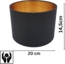Eleganter Lampenschirm im Retro Vintage Design, ideal für E27 Fassungen. Der Stoffschirm in Schwarz und Gold hat einen Durchmesser von 20 cm und eine Höhe von 14,5 cm. Er sorgt für warmes, stimmungsvolles Licht und passt perfekt zu verschiedenen Leuchten wie Tischlampen, Pendelleuchten und Deckenleuchten. Der hochwertige Stoff und die goldfarbene Innenseite verleihen Ihrem Wohnraum eine besondere Note.