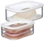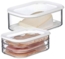 Die Mepal Modula Frischhaltedosen Wurst & Käse bieten eine praktische Lösung zur Aufbewahrung von Fleischwaren und Käse. Das Set umfasst eine rechteckige Aufschnittdose mit einem Volumen von 3 x 550 ml und eine Käsedose mit einem Inhalt von 2 Litern. Beide Dosen sind stapelbar, spülmaschinenfest und ermöglichen durch den transparenten Deckel einen direkten Blick auf den Inhalt.