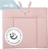 Die rosa Wickelauflage von Roba bietet mit ihrem niedlichen Hasengesicht „Lily“ und zwei Hasenohren eine ausgefallene Lösung, um die Wickelkommode modern und kuschelig einzurichten. Die