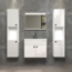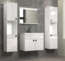 Details: Badkombination Haven GE11393-01 Badmöbel Set hängend Front MDF weiß Hochglanz Lack, ohne Umleimerkanten Korpus weiß Melamin Gesamtmaß B/H/T ca.: 150 /190/40 cm bei 15 cm Typenabstand bestehend aus: 2 x Hochschrank B/H/T je ca.: 30/133/30 cm 2 Türen 2 Einlegeböden / 4 geschlossene Fächer 1 offenes Fach Türen links oder rechts zu befestigen Spiegel B/H/T ca.: 61/50/10 cm 1 Ablageboden verdeckte Wandbefestigung Waschbeckenunterschrank B/H/T ca.: 62/55/40 cm 2 Türen 1 großes geschlossenes Fach Keramik-Waschbecken Einlassbecken mit Überlauf Ablauf- und Armaturloch mit DIN-Maß LED Spiegellampe bitte dazu bestellen LED Spiegellampe dazu bestellen: Chrom Aufsatzbeleuchtung Spiegellampe ca. 300 mm 4,5 Watt / 355,00 Lumen, Licht kalt-weiß IP44, Spritzwassergeschützt Direktanschluss an den Hausstrom An / Aus über Zimmerlichtschalter Qualität: Elegante Badkombination in modernem Design Hochwertige MDF-Fronten in weiß Hochglanz Lack Korpus mit strapazierfähiger Melaminbeschichtung Alle Schränke als Hängeschränke, 3D Hängebeschläge Spiegel mit Floatglas Griffleisten in silberfarben Metallscharniere FSC®-zertifizierter Holzwerkstoff, aus kontrolliert nachhaltiger Forstwirtschaft Viel Stauraum bei wenig Platzbedarf Pflegeleicht durch glatte Oberflächen, einfach feucht abwischen LED Spiegellampe bitte dazu bestellen Lieferumfang: Zerlegt/Selbstmontage, inkl. bebilderte Aufbauanleitung Montage- und Befestigungsmaterial Dekoration, Beimöbel, Elektrogeräte und Armaturen sind nicht enthalten Energieeffizienz Die Skala der Energieeffizienz reicht von G für geringste, bis A für höchste Effizienz Auf dieser Skala hat die LED-Beleuchtung den Wert G Ein Austausch der LED-Lampen in der Leuchte ist nicht möglich Hersteller Art.-Nummer 1100-228-00