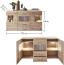 Material: MDF Dekor: Artisan Eiche Absetzungen: Caspio dunkel Sichtbare Rückwände: Caspio dunkel Füße: Kunststoffgleiter Griffe: Metall, chrom matt Türstopper: Softclose 3 Schubkästen: Softclose und Selbsteinzug Glas: Klarglas Inklusive LED Beleuchtung, neutralweiß 2 Türen mit Glaseinsatz 6 Fächer, 2 davon beleuchtet Zerlegte Ware. Eine bebilderte Aufbauanleitung für die Endmontage liegt bei.