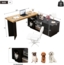 Merax 120cm Eckschreibtisch mit integriertem Tierhaus, L-förmig oder einteilig, flexible Montage, Eckschreibtisch für Home Office mit XL-Tierhöhle, Schwarz