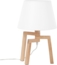 Moderne Tischlampe mit natürlichem Flair und skandinavischem Charme. Der große, runde Lampenschirm aus weißem Polyester versprüht Frische und wohnlichen Charakter. Das in Winkeln miteinander verbundene, dreibeinige Gestell aus hellem Holz ist asymmetrisch gearbeitet und bietet sicheren Stand. Die harmonische Kombination aus unterschiedlichen Formen und Material macht diese Tischleuchte zu einer ausgezeichneten Wahl für alle, die skandinavisches Design, natürliches und modernes Ambiente und helle Holzmöbel lieben. Die Leuchte ist mit einem transparenten Kabel mit Schalter ausgestattet.