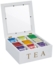 Weiße Teebox mit 9 Fächern, ideal zur übersichtlichen und aromageschützten Aufbewahrung Ihrer Teesorten. Die dekorative Box mit "Tea"-Aufdruck bietet Platz für alle Lieblingssorten und ermöglicht dank des Sichtfensters einen schnellen Überblick über Ihren Teevorrat. Die entnehmbaren Trennwände sorgen für Flexibilität in der Nutzung.