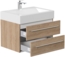 Das Badmöbelset "Design 700" in Eiche hell vereint hochwertige Materialien und durchdachtes Design. Der Waschtischunterschrank (70 x 45 x 50 cm) ist mit zwei Softclose-Auszügen ausgestattet und wird bereits vormontiert geliefert. Das Waschbecken (70 x 13 x 50 cm) wird einfach auf den Unterschrank gesetzt. Genießen Sie die optische Wertigkeit und die langlebigen Oberflächen, die in Deutschland gefertigt werden.