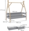 Das Vitalispa Tipi-Bett Bali in Grau (80 x 160 cm) ist mehr als nur ein Kinderbett – es ist ein Ort voller Abenteuer und Fantasie. Mit seinem einzigartigen Design verwandelt es das Kinderzimmer in einen magischen Spielplatz. Hergestellt aus hochwertigem Kiefernholz und ausgestattet mit zwei praktischen Schubladen, bietet es nicht nur einen gemütlichen Schlafplatz, sondern auch viel Stauraum für Spielzeug und andere Utensilien.
