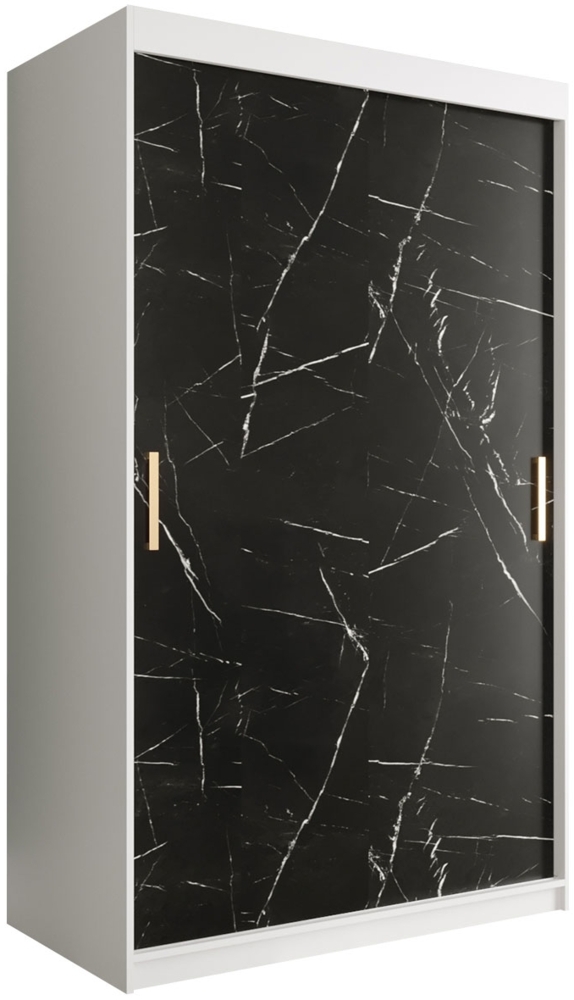 Kleiderschrank Kamoga T 120 (Weiß / Marmor Schwarz + Gold, mit Schubladen)