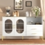 Sideboard 140x38x90 cm in Weiß mit Glasfront und goldenen Akzenten – eleganter Stauraum Bild 1
