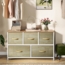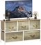Die DWVO Kommode mit 5 Schubladen vereint modernes Design und Funktionalität. Sie verfügt über ein stabiles Metallgestell und eine MDF-Holzplatte, die Langlebigkeit garantieren. Die faltbaren Schubladen aus hochwertigem Stoff bieten großzügigen Stauraum für Kleidung, Spielzeug und Kosmetik. Mit verstellbaren Füßen schützt sie Ihren Boden vor Kratzern. Ideal für Schlafzimmer und Wohnzimmer.