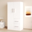 Dieser funktionale Kleiderschrank mit Doppeltüren bietet großzügigen Stauraum für Kleidung, Taschen und Accessoires. Mit zwei kompakten Schubladen für kleinere Gegenstände und einem großen Innenfach auf der rechten Seite ist er ideal für Kinder- und Jugendzimmer. Sein modernes Design in Weiß und die hochwertigen Materialien sorgen für Stabilität und eine angenehme Haptik. Der Schrank kann flexibel innerhalb oder außerhalb von Hochbetten platziert werden.