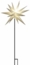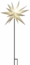 Der LED Stern mit Stab aus weißem Kunststoff hat einen Durchmesser von 58 cm und ist mit einer warmweißen LED ausgestattet. Die integrierte Timerfunktion ermöglicht eine automatische Steuerung von 6 Stunden an und 18 Stunden aus. Der 90 cm hohe Stab und der 20 cm Erdspieß sorgen für eine stabile Positionierung im Außenbereich. Mit der Schutzart IP44 ist der Stern ideal für den Einsatz im Freien geeignet.