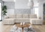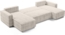 AX LIVING Aydin U Sofa Wohnlandschaft mit Schlaffunktion U Form in Creme vereint modernen Lifestyle mit Komfort und Eleganz. Der weiche Cordstoff in Creme sorgt für eine warme Ausstrahlung und lädt zu entspannten Abenden ein. Mit einer großzügigen Liegefläche von 298 x 124 cm verwandelt sich das Sofa im Handumdrehen in ein bequemes Bett. Der praktische Bettkasten bietet zusätzlichen Stauraum, während die breiten Sitzflächen und großen Rückenkissen für hohen Komfort sorgen.