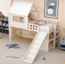 Das Merax Etagenbett aus massivem Holz und MDF bietet eine Liegefläche von 90 x 200 cm und ist ideal für Kinderzimmer. Mit einer Gesamtgröße von 208 x 219 x 219 cm und einer Gewichtskapazität von 120 kg vereint es Funktionalität und Abenteuer. Die 15 Latten sorgen für Stabilität, während die Ablagefächer und die Rutsche zusätzlichen Stauraum und Spielspaß bieten.