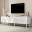 Moderner Fernsehschrank mit den Maßen 180 x 40 x 52 cm in reinem Weiß. Das elegante Design mit kunstvoll gestalteten 3D-Relieftüren bietet viel Stauraum und fügt sich harmonisch in zeitgenössische Einrichtungsstile ein. Die pflegeleichte, wasserabweisende Oberfläche sorgt für einen ruhigen Look, während durchdachtes Kabelmanagement für Ordnung sorgt. Ideal als TV-Schrank oder Ablage in verschiedenen Räumen.