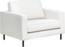 Moderner Sessel SAVALEN in cremeweißem Stoffbezug. Dieser stilvolle Sessel bietet maximalen Sitzkomfort durch die breite, tiefe Sitzfläche und die weichen Kissen. Das Metallgestell sorgt für eine angenehme Sitzhöhe, während die schmalen Armlehnen zur Gemütlichkeit beitragen. Abnehmbare Kissenbezüge garantieren Pflegeleichtigkeit und Frische.